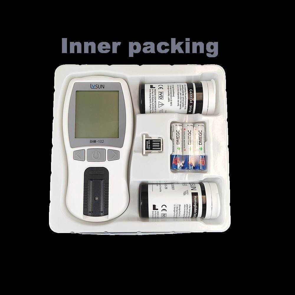 Principe de mesureL'analyseur applique le principe de la photochimie et est utilisé avec la bandelette de test d'hémoglobine (BHS-101). L'échantillon de sang total à tester est ajouté dans la zone d'échantillon de la bandelette. Dans le processus d'infiltration rapide, les cellules sanguines sont filtrées ou dissoutes. Le substrat réagit avec les enzymes et les produits chimiques dans la couche de réaction et entraîne le changement de couleur, puis l'intensité de la couleur est proportionnelle à la concentration de la substance.