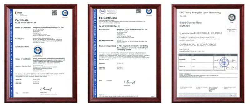 Plage de mesure | CT : 2.59-12.93 mmol/L(100-500mg/dL, 1 mmol/L=38.66mg/dL) HDL :0.39-2.59 mmol/L(15-100mg/dL, 1 mmol/L=38.66mg/dL) TG :0.51-7.34 mmol/L(45-650mg/dL, 1 mmol/L=88.6mg/dL) |