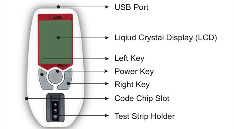 Le compteur d'analyse de la fonction rénale fournit des résultats. Le lecteur d'analyse de la fonction rénale peut stocker jusqu'à 500 résultats et enregistrements. Le compteur peut être utilisé en chargeant la batterie.